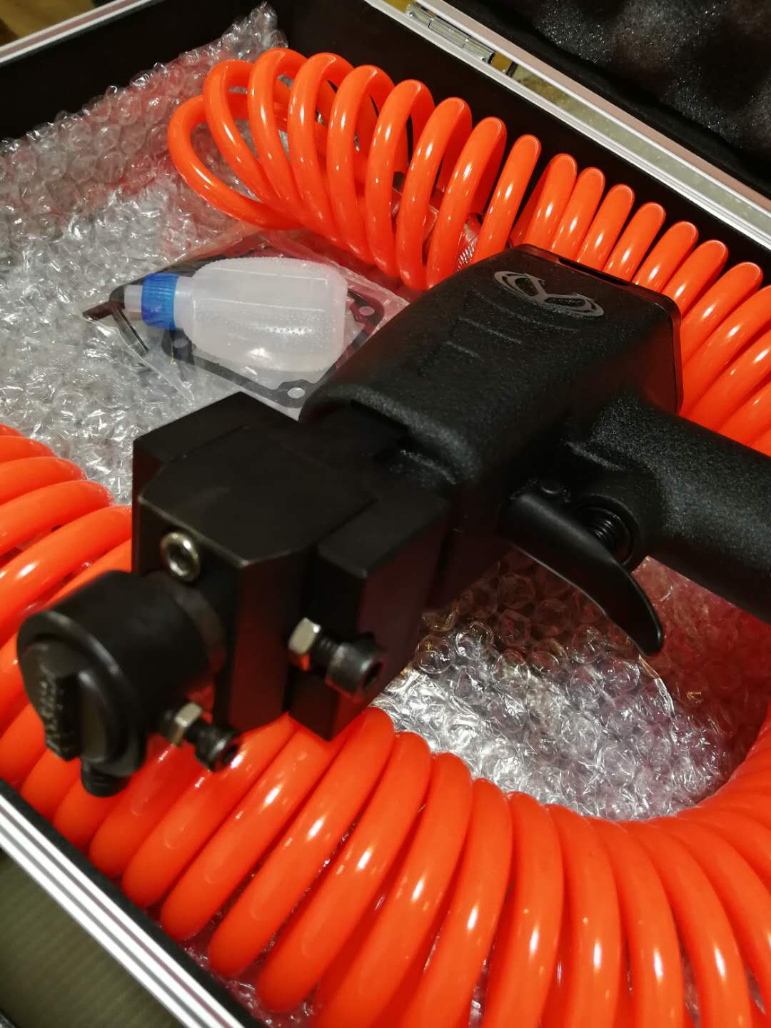 8、砸號機(jī)長時間使用時,注意保養(yǎng),防止擊打無力,可用配帶的潤滑油,把把手和氣管連接處打開,從氣管入口處滴入幾滴潤滑油即可。