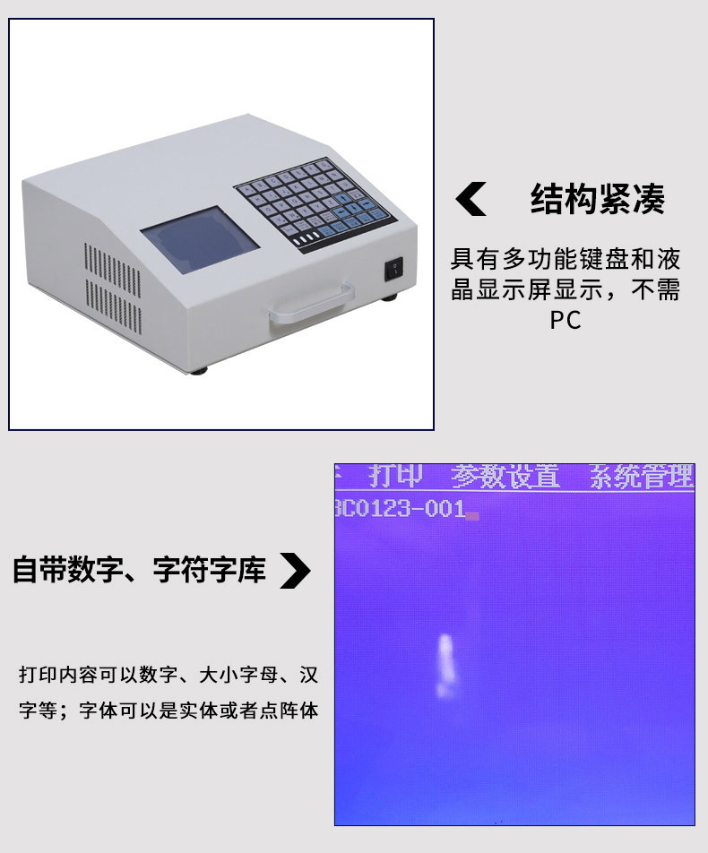 4、系統(tǒng)自帶數(shù)字、字符字庫,打印內(nèi)容可以數(shù)字、大小字母、漢字、特殊字符等;字體可以是實(shí)體或者點(diǎn)陣體。用戶可增加多種數(shù)字、字母、漢字、特殊字符等字庫